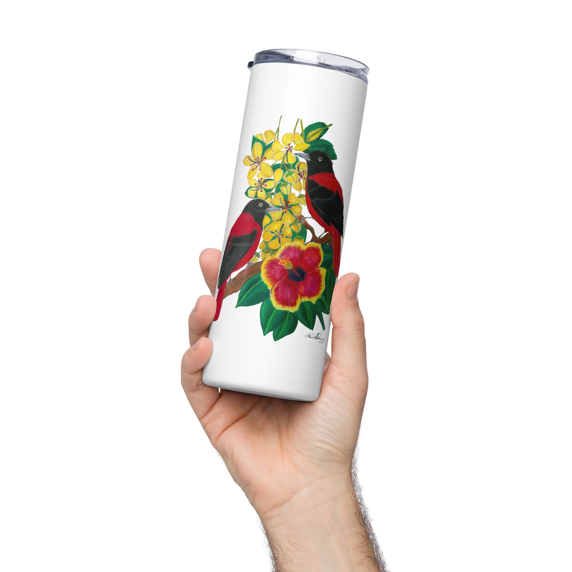 Enjoy hot or cold drinks on the go with this stylish stainless steel tumbler! This reusable tumbler with a metal straw is a perfect combo for hot or cold drinks at any time of the day. This tumbler features my own personally hand drawn artwork, making it unique in comparison to the run of the mill, commercial products.