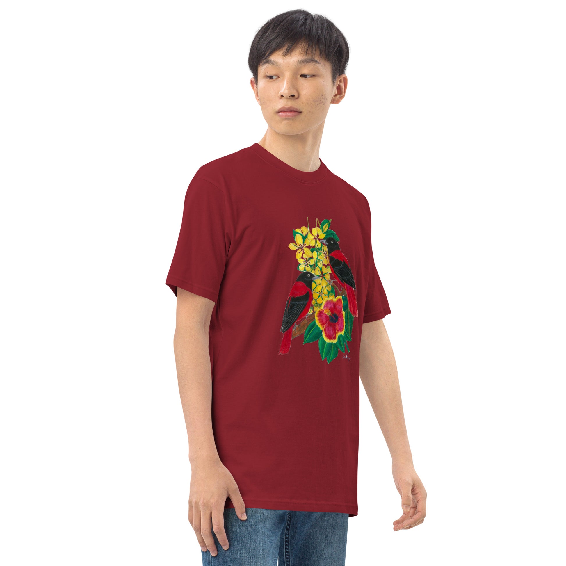 The beauty of SE Asia's tropics - the beautiful Maroon Oioles with a hibiscus flower set this t-shirt apart from the ordinary! Elevate your outfit with the men’s premium heavyweight tee. The tee has a structured, classy fit and is both durable and soft thanks to its ring-spun cotton material. Layer the t-shirt or wear it on its own and enjoy great looks with little effort!