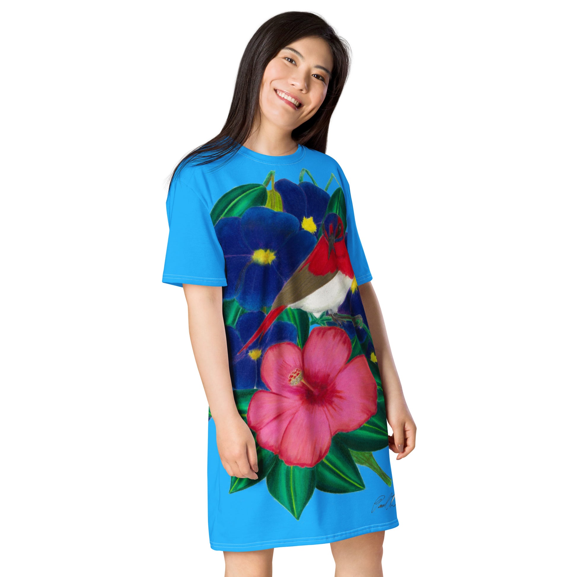 Stand out with originalarostic flare with another one of my collection of Rainforest treasures! This one features Hibiscus flowers and Temminck's Sunbird on a deep sky blue